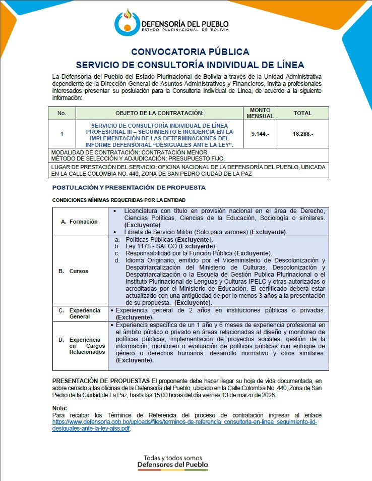 Oruro: Defensor del Pueblo visita centro "Renacer" y suscribe convenio con CEPA para proteger derechos de jóvenes y comunidades