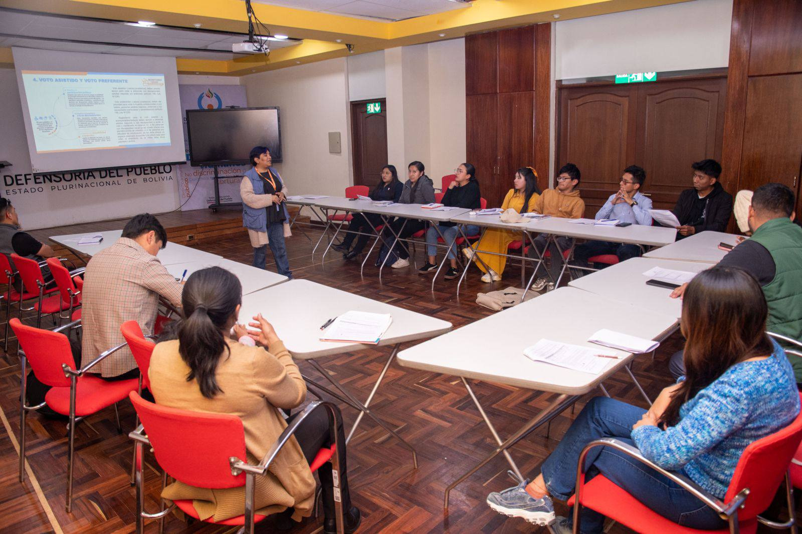 n el mes de marzo, la Defensoría del Pueblo, a través delegaciones departamentales viene desarrollando diversas acciones para promover la protección de los derechos humanos y fortalecer la participación ciudadana. En este marco en Yacuiba, la institución defensorial desarrolló un taller dirigido a instituciones públicas para socializar el Manual de Atención a Personas Sordas y fomentar la incorporación de traductores de la Lengua de Señas Boliviana (LSB). En La Paz, se capacitó a monitores voluntarios que acompañarán el monitoreo de los derechos humanos durante las Elecciones Subnacionales 2026, con el objetivo de asegurar que la jornada electoral se desarrolle con transparencia, respeto a los derechos ciudadanos y compromiso democrático, fortaleciendo la vigilancia cívica y la participación activa de la sociedad civil en todo el país. De igual forma, se desarrolló los “Conversatorios en Democracia”, impulsados junto a la Friedrich-Ebert-Stiftung (FES Bolivia), para reflexionar sobre la conexión entre democracia, servicios básicos y derechos humanos, destacando la importancia de garantizar el acceso a derechos materiales y fortalecer la gestión pública en beneficio de la población. Finalmente, en el Día Internacional de la Mujer, en el marco de un taller coadyuvó en la construcción de agendas de trabajo con integrantes de la Federación Nacional de Trabajadoras del Hogar de Bolivia.