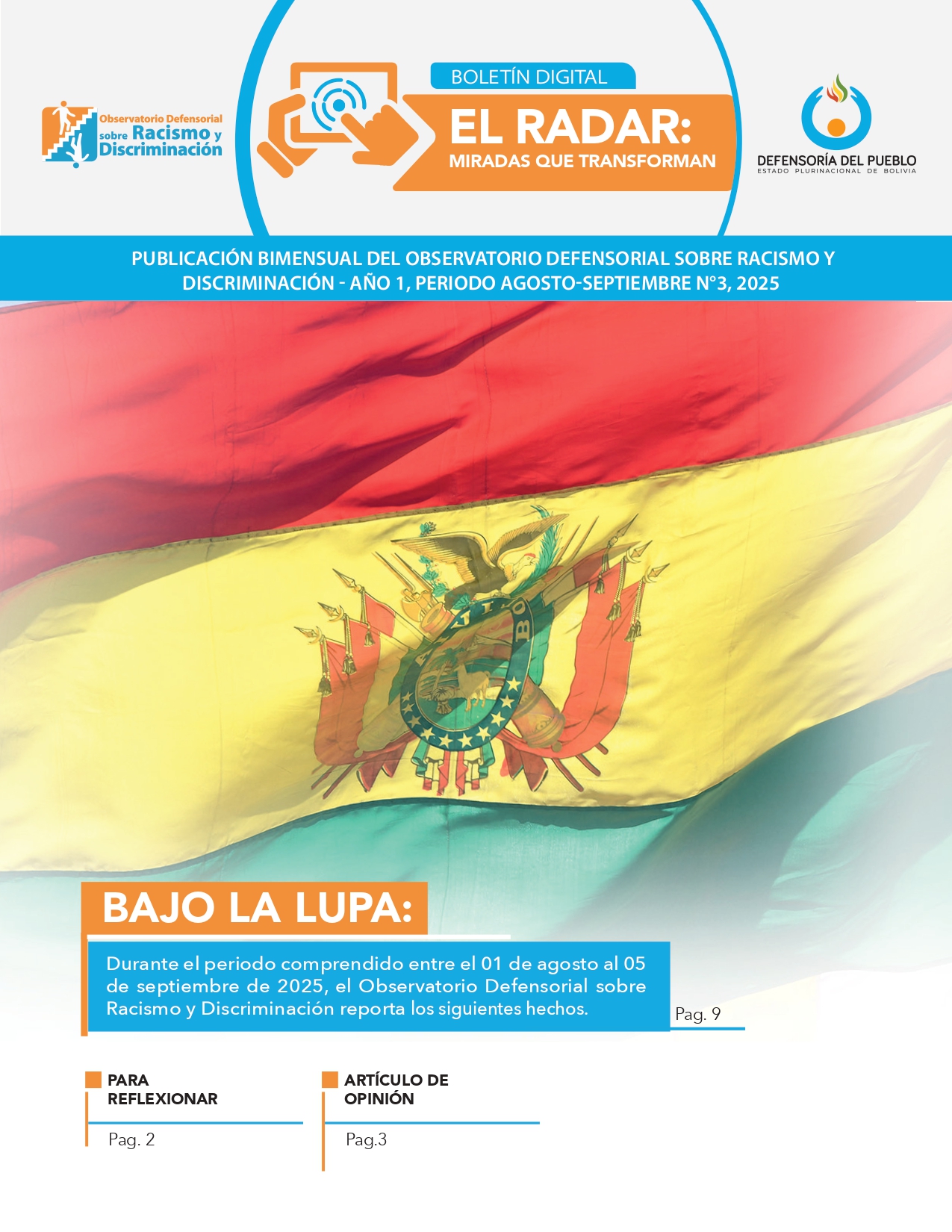 l Observatorio Defensorial sobre Racismo y Discriminación (ODRD), reveló que entre enero de 2013 y mayo de 2025 el Sistema de Servicio al Pueblo registró 4.288 denuncias por vulneraciones de derechos humanos relacionadas a racismo y/o discriminación. Además de esto, se han identificado 30 discursos de odio en el contexto de las elecciones generales de 2025. Estos números contrastan con la Constitución Política del Estado, y normativa relativamente avanzada en materia de no discriminación, como la Ley N.º 045 Contra el Racismo y Toda Forma de Discriminación, lo que muestra que la debilidad no radica tanto en la ley, como tal, y sino más bien, en su aplicación práctica, explicó el responsable del ODRD, Martín Torrico. “El Observatorio identifica que la aplicación de las acciones destinadas a combatir el racismo y la discriminación es débil por varios motivos: la falta de datos consolidados, la falta de coordinación interinstitucional, la capacitación insuficiente del personal público y el carácter esporádico de las campañas de sensibilización. Aun con un registro constante de casos, la respuesta institucional queda rezagada”, señaló el servidor defensorial. Ante esta situación el ODRD recomienda institucionalizar la formación en derechos humanos para servidores públicos, mejorar los mecanismos de atención a víctimas y asegurar el seguimiento efectivo de denuncias, hasta su conclusión.