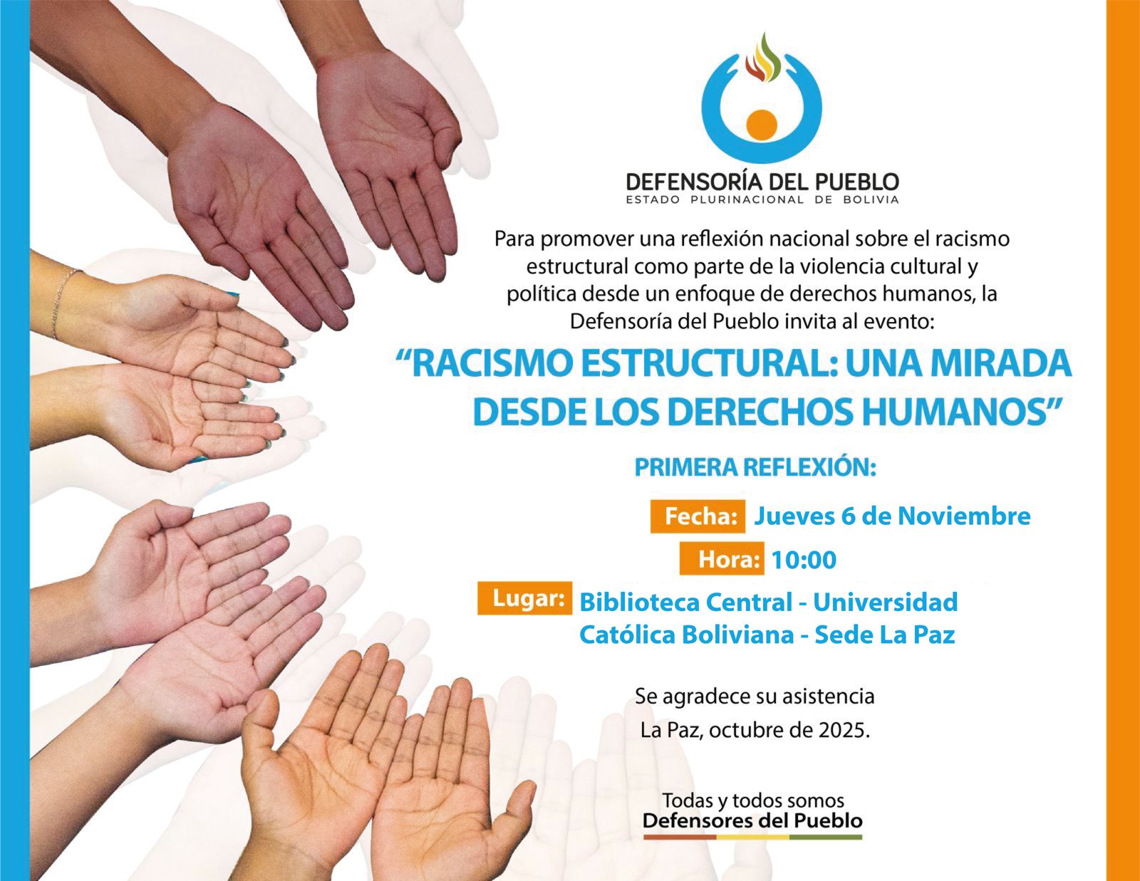 Ciclo de reflexiones: “Racismo estructural: una mirada desde los derechos humanos” abordará sobre la polarización en Bolivia