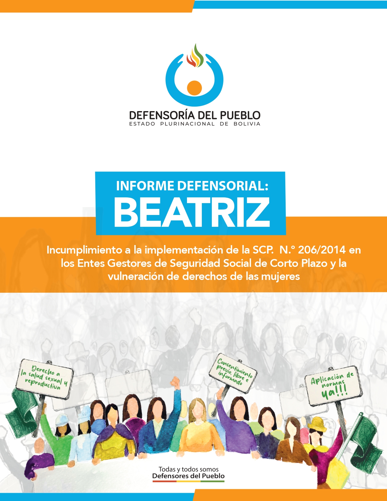 Título: Informe Defensorial: Beatriz - Incumplimiento a la implementación de la SCP. N.° 206/2014 en los Entes Gestores de Seguridad Social de Corto Plazo y la vulneración de derechos de las mujeres