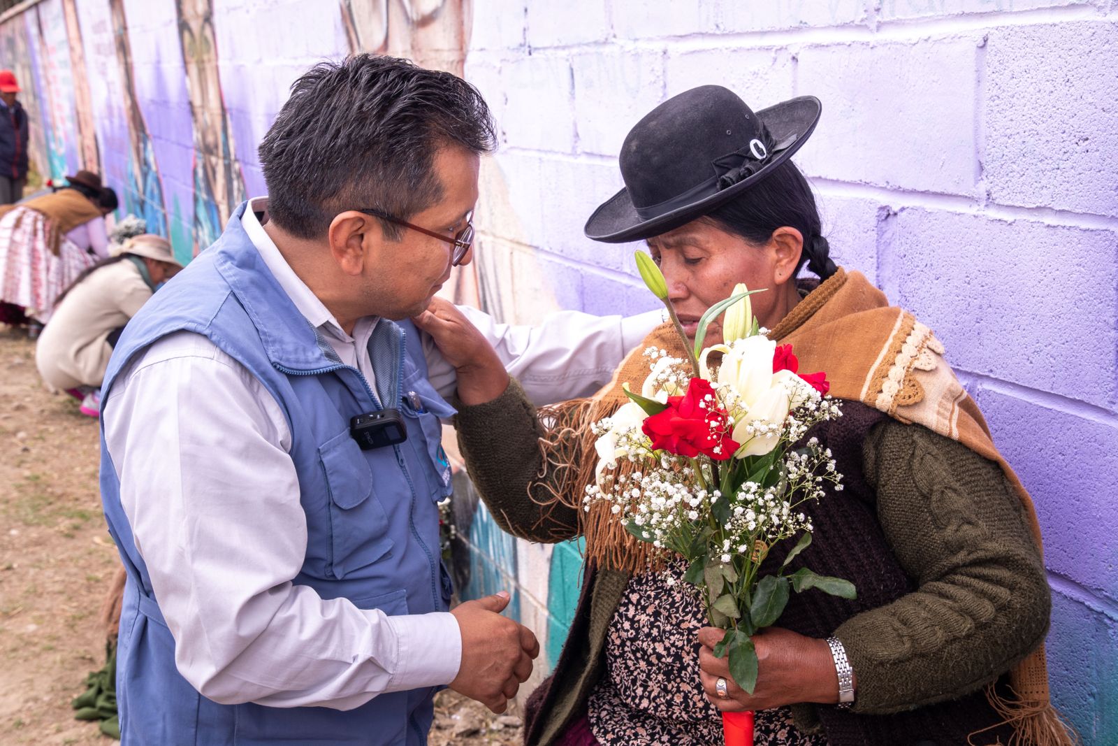 El Alto, noviembre 19 (UCOM/UCREA). – El Defensor del Pueblo, Pedro Callisaya Aro, entregó una ofrenda floral y la restauración del mural pintado en una de las paredes de la explanta de YPFB, en memoria de las víctimas de la masacre de Senkata del 2019, como un gesto de respeto y demanda de justicia por las personas fallecidas hace seis años.