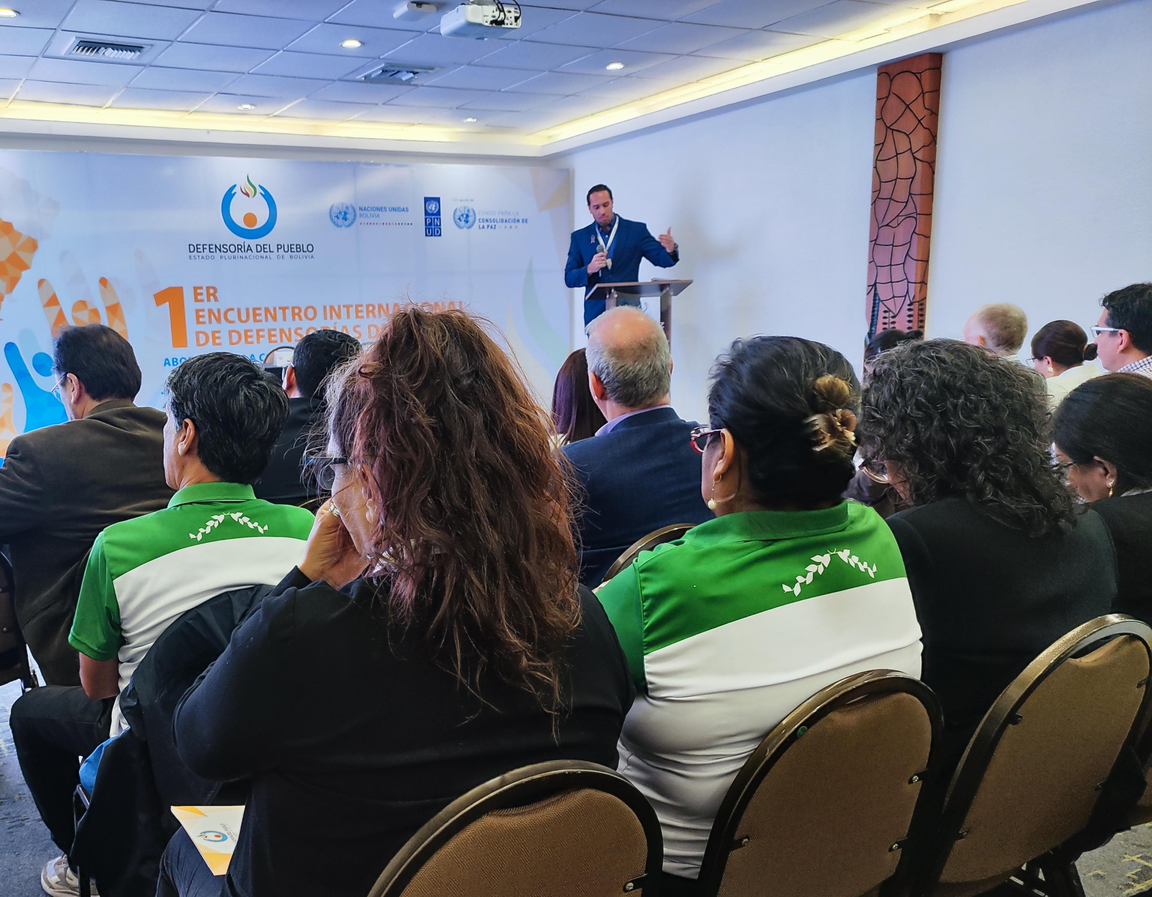Santa Cruz de la Sierra, 17 de diciembre de 2025 (UCOM/DPB.- El Defensor del Pueblo del Estado Plurinacional de Bolivia, Pedro Callisaya, inauguró hoy el Primer Encuentro Internacional de Defensorías del Pueblo, denominado “Abordaje de la Conflictividad Social desde el Enfoque de Derechos Humanos”, evento que tiene como objetivo impulsar la reflexión y el intercambio de buenas prácticas entre las Instituciones Nacionales de Derechos Humanos (INDH) de la región.