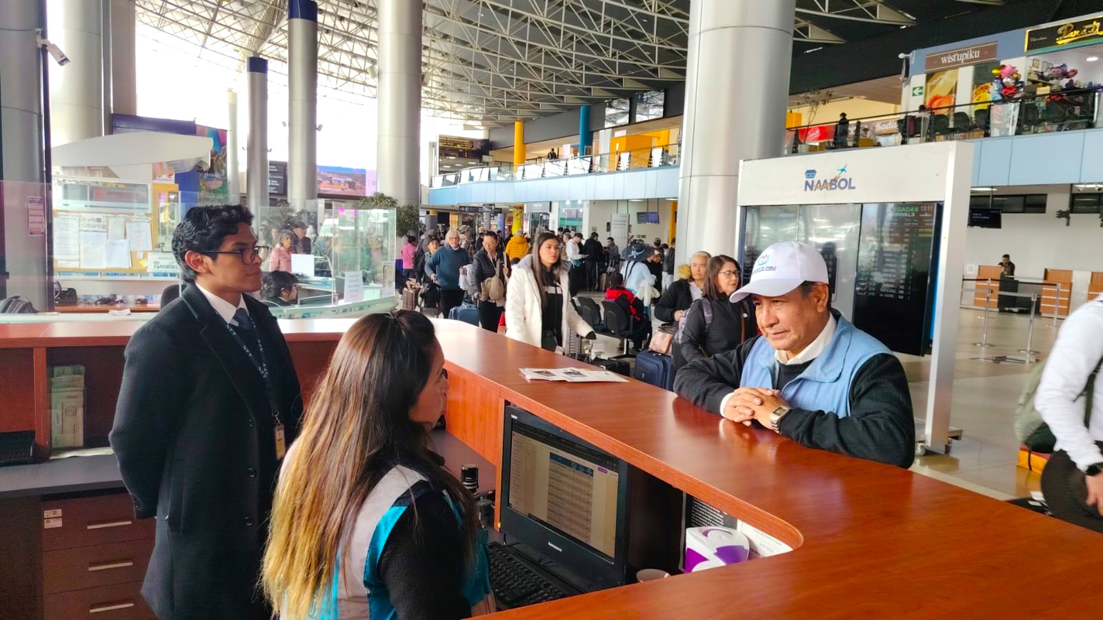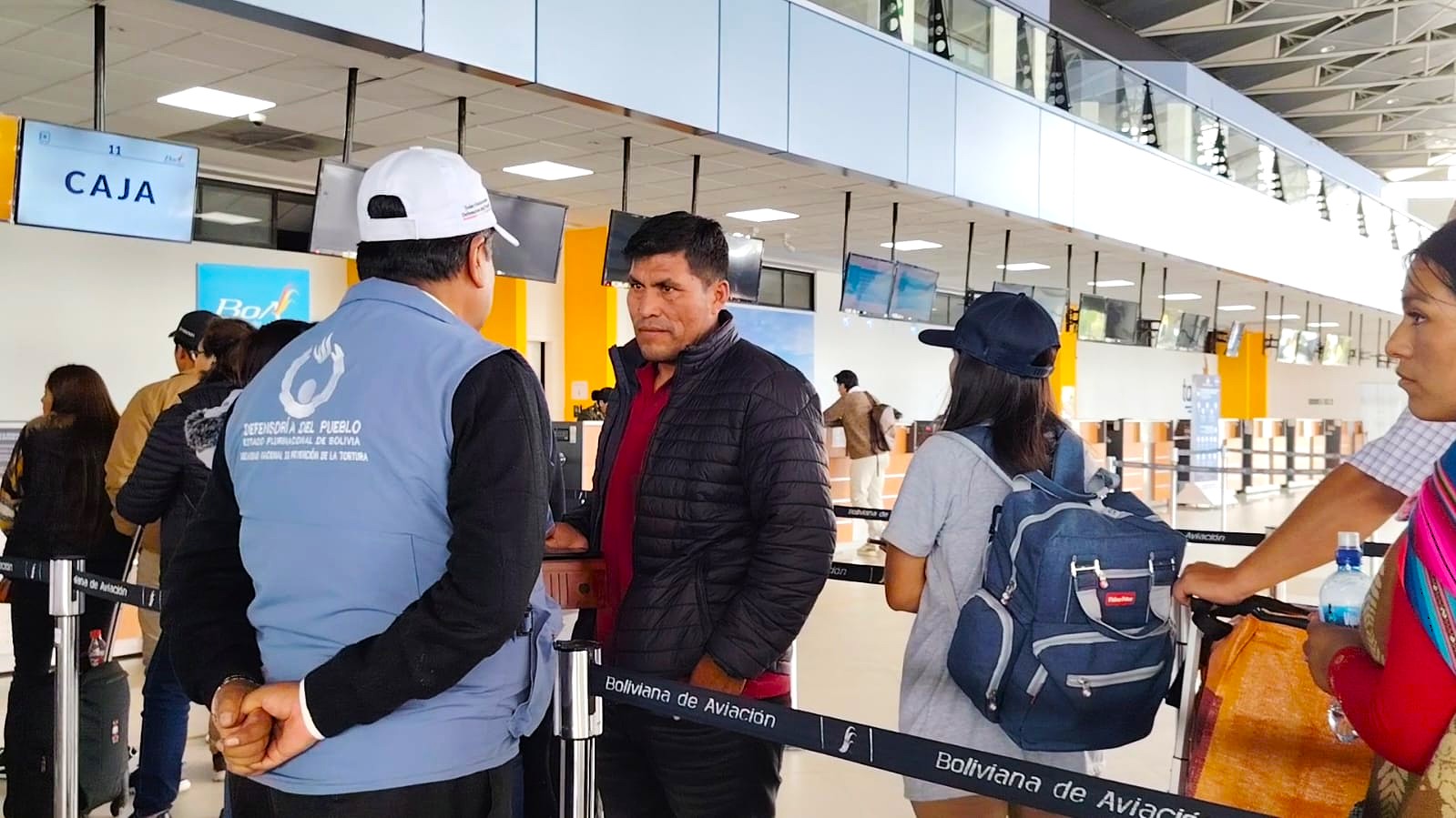 Con el objetivo de verificar la situación de las y los usuarios del transporte aéreo en el resto de destinos, frente a la aplicación de nuevas tarifas en los pasajes, la Defensoría del Pueblo, realizó un monitoreo en el Aeropuerto Internacional de El Alto, a fin de precautelar el derecho al acceso a servicios de transporte en condiciones de igualdad, información y trato digno.