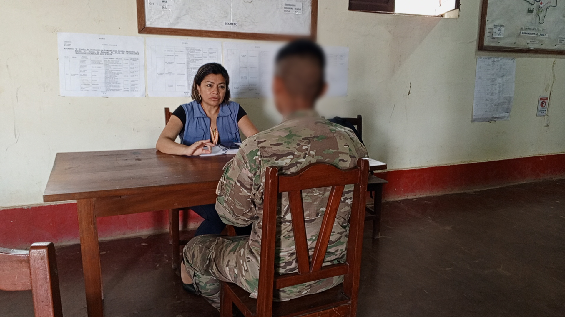 Asimismo, la delegada defensorial sostuvo una nueva comunicación con el comandante de la Primera División del Ejército, con quien abordó la aplicación de reglamentos disciplinarios y los procedimientos adoptados ante la desaparición del soldado, incluyendo las acciones de búsqueda y la comunicación formal del hecho.