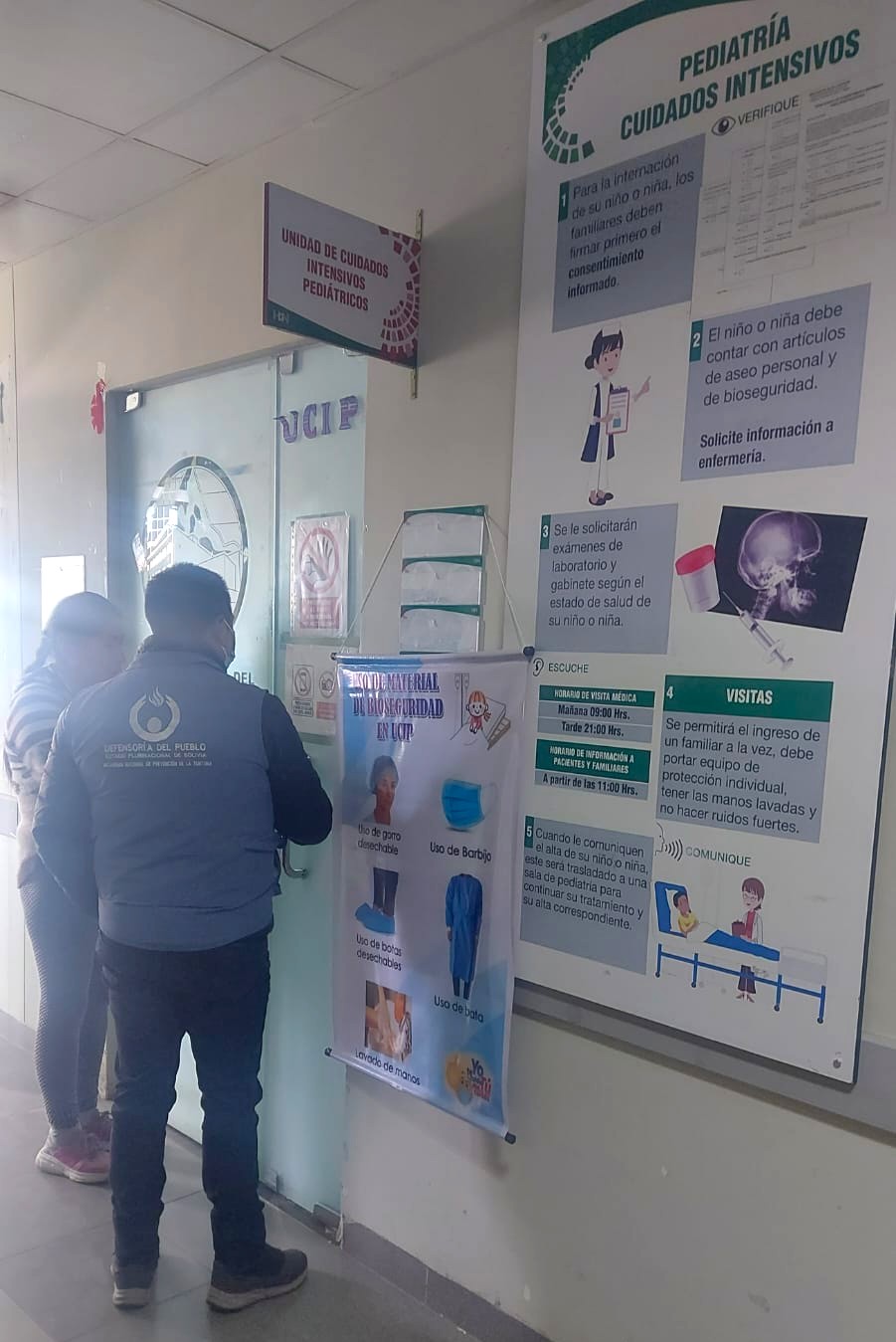 El verificativo defensorial constató que las áreas de emergencias y unidades críticas funcionaban con relativa normalidad, aunque las consultas y cirugías electivas fueron reprogramadas debido al paro de 48 horas realizado por el personal de salud y médicos dependientes del Servicio Departamental de Salud de La Paz (SEDES). Sin embargo, el personal dependiente del Gobierno Autónomo Municipal de El Alto continuó brindando atenciones