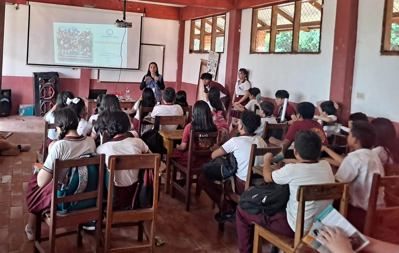 Riberalta, 20 octubre de 2025.- En el marco de la promoción de los derechos humanos y la construcción de una cultura de paz, la Defensoría del Pueblo participó activamente en la Feria de Prevención de la Violencia organizada por los Defensores Estudiantiles de la Unidad Educativa Emilia de Hecker, una iniciativa impulsada por los estudiantes Elizabeth Fernández y Marco Antonio Zelaya, representantes estudiantiles a nivel municipal.