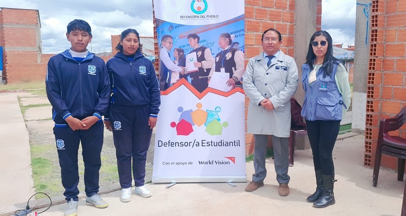 “Por instrucción del Defensor del Pueblo, Pedro Callisaya Aro, realizamos el acompañamiento al proceso democrático de elección de la Defensora y el Defensor Estudiantil (…) este proceso permite que niñas, niños y adolescentes ejerzan sus derechos a la participación y organización en un entorno de respeto, equidad y transparencia”, informó José León, responsable de la Unidad de Coordinación Regional de Desaguadero.