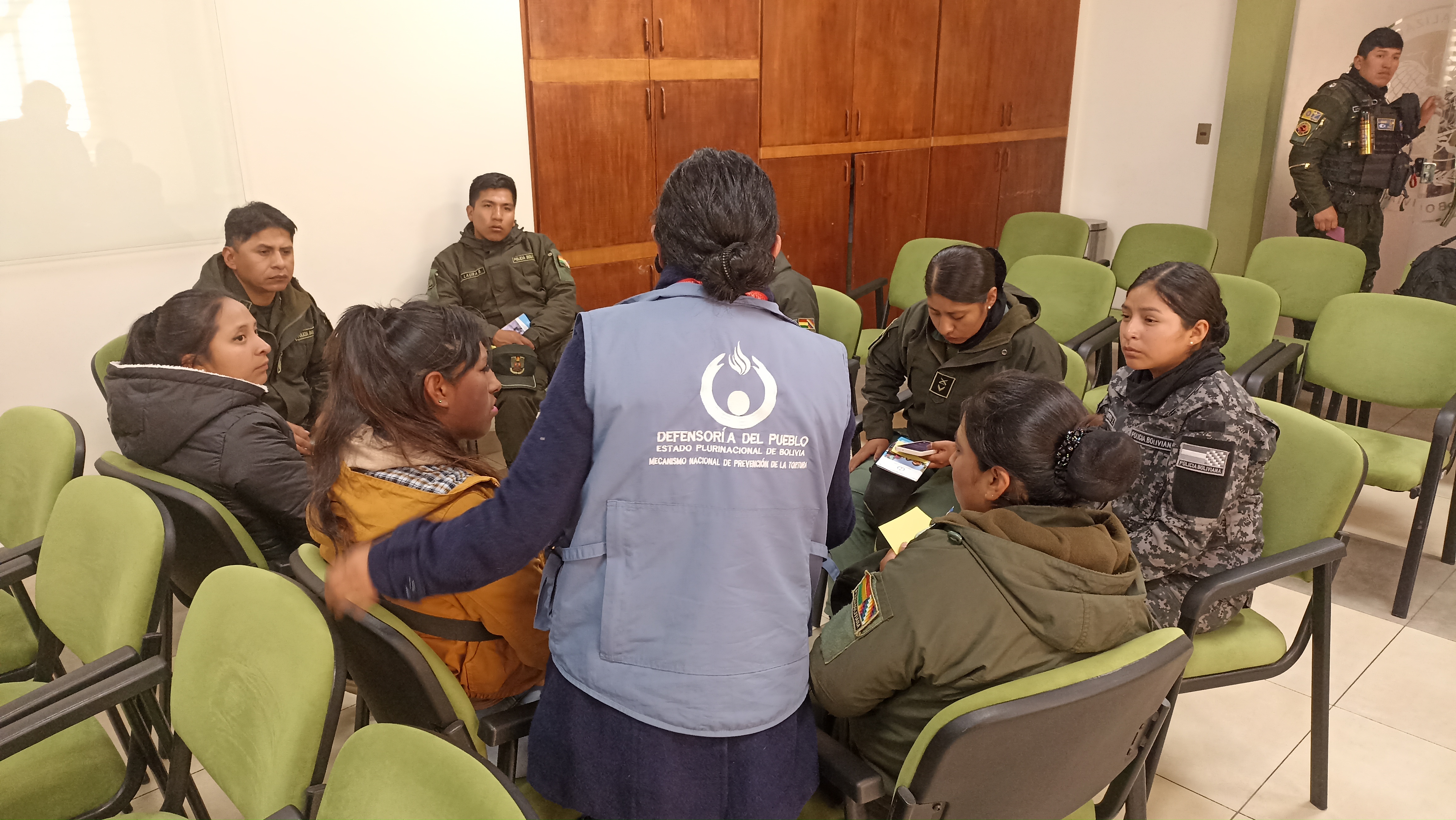 “Es necesario que ustedes como funcionarios policiales sepan qué es la perspectiva de género en los procesos de atención y juzgamiento de personas infractoras, no solamente pensando si es hombre o mujer sino basados en sentencias constitucionales sobre el tema, por lo tanto, el trato que ustedes les brinden debe ser en esa línea”, puntualizó el delegado Defensorial Departamental de La Paz, Francisco Rodríguez.